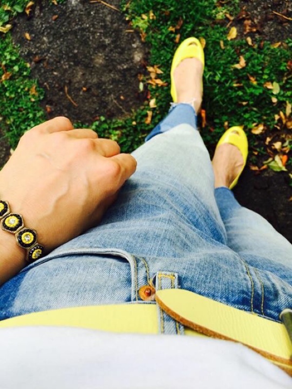 いつものZARAジーンズに小物を黄色で効かせて