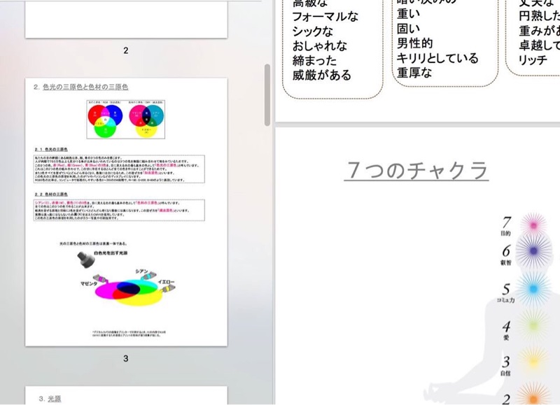 のちのち広い範囲のお仕事で活用可能な「色の歴史、波長、目のしくみ、ファッションとチャクラの関係」などかなり専門的な知識を勉強しました。