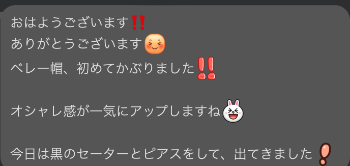 帰ってから、グループLINEでコーデをいろいろ送ってくれるのも嬉しいです❤️