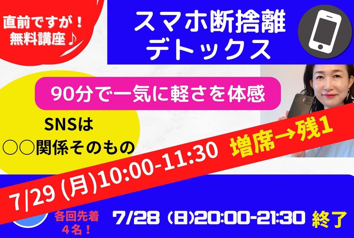 📣明日朝、2回目10:00〜は増席してあと1名だけ❣️